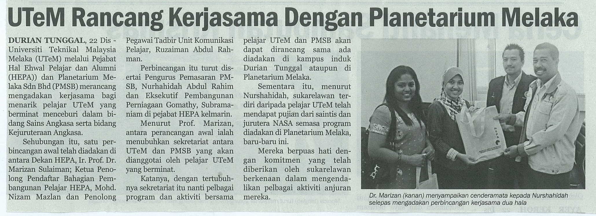 UTeM Rancang Kerjasama Dengan Planetarium Melaka