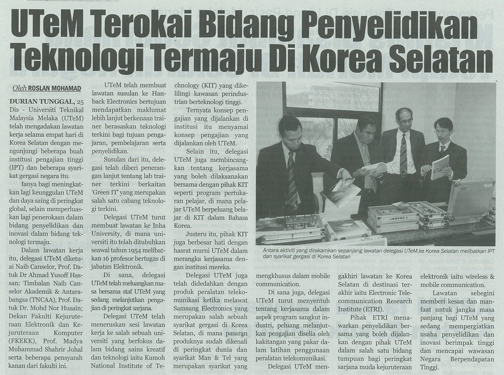 UTeM Terokai Bidang Penyelidikan Teknologi Termaju Di Korea Selatan