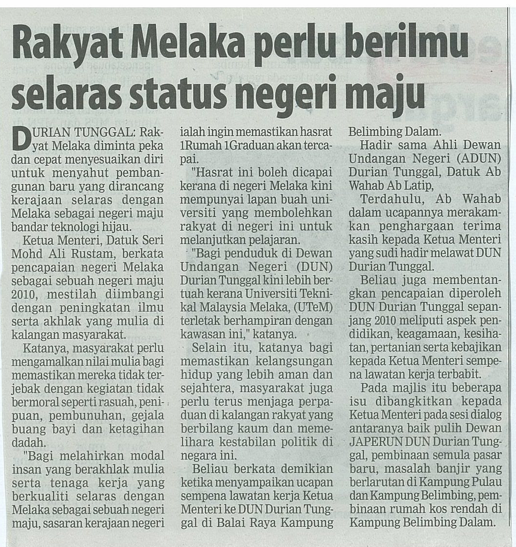 Rakyat Melaka perlu berilmu selaras status negeri maju