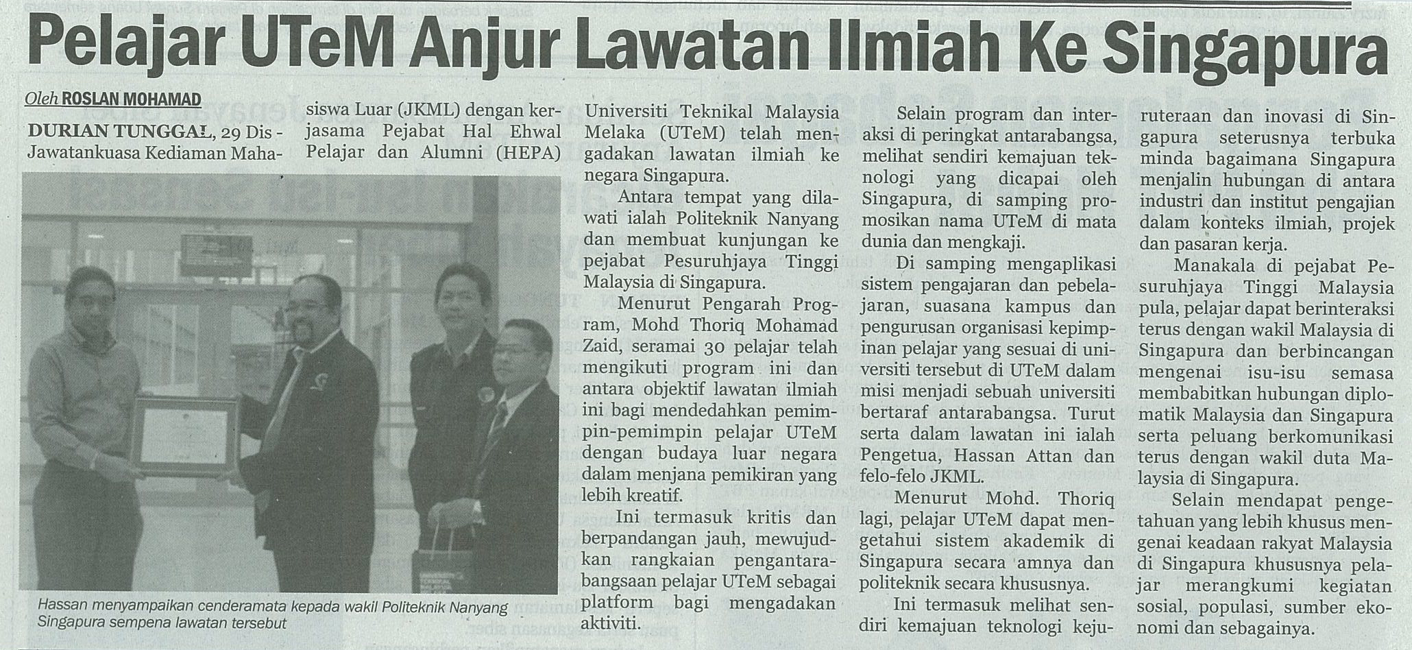 Pelajar UTeM Anjur Lawatan Ilmiah Ke Singapura