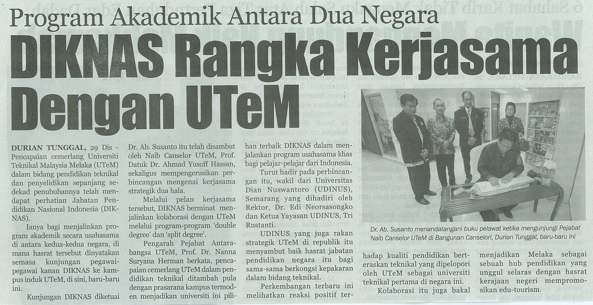 Program Akademik Antara Dua Negara DIKNAS Rangka Kerjasama Dengan UTeM