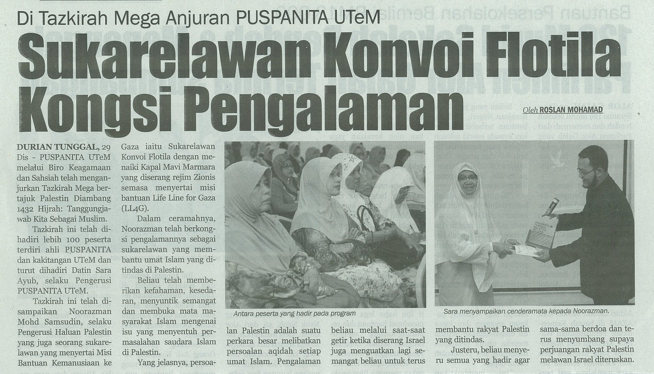 Di Tazkirah Mega Anjuran PUSPANITA UTeM Sukarelawan Konvoi Flotila Kongsi Pengalaman