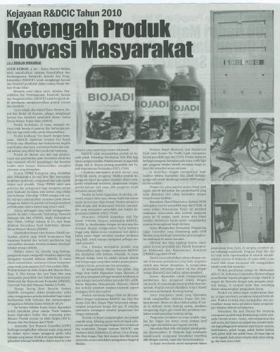 Kejayaan R&DCIC Tahun 2010 Ketengah Produk Inovasi Masyarakat
