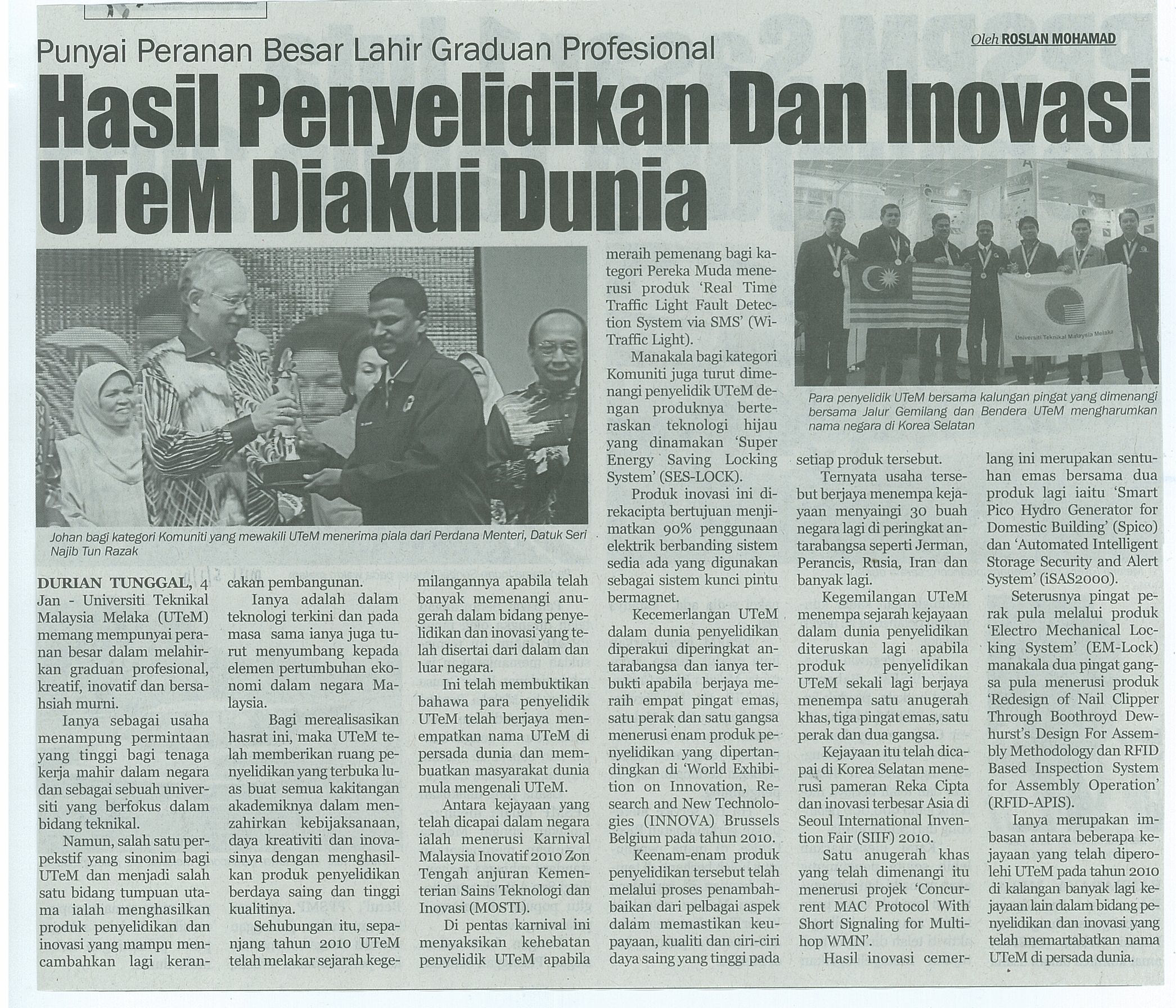 Punyai Peranan Besar Lahir Graduan Profesional Hasil Penyelidikan Dan Inovasi UTeM Diakui Dunia