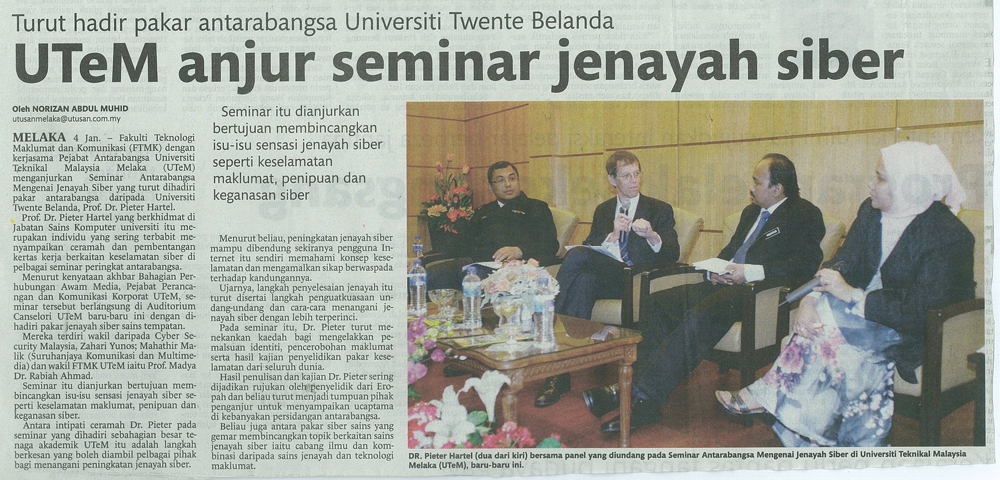 Turut hadir pakar antarabangsa Universiti Twente Belanda UTeM anjur seminar jenayah siber
