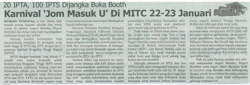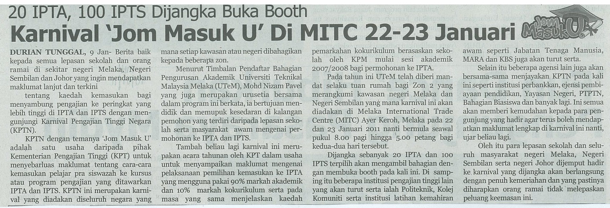 20 IPTA, 100 IPTS Dijangka Buka Booth Karnival 'Jom Masuk U' Di MITC 22-23 Januari