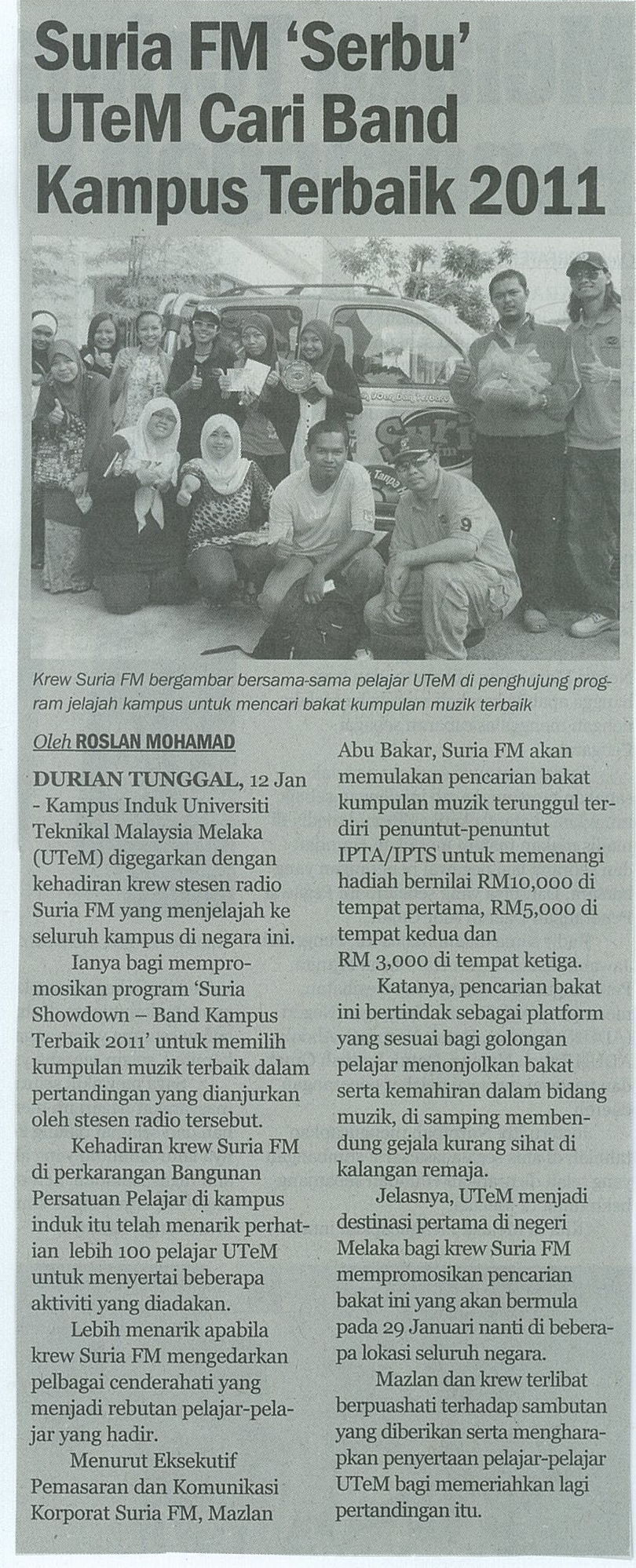 Suria FM "Serbu" UTeM Cari Band Kampus Terbaik 2011