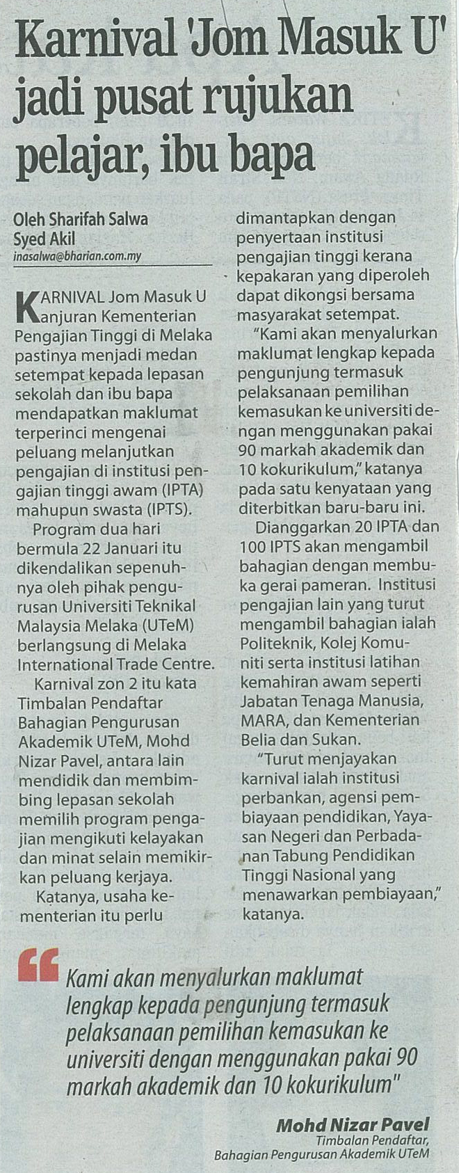 Karnival 'Jom Masuk U' jadi pusat rujukan pelajar, ibu bapa