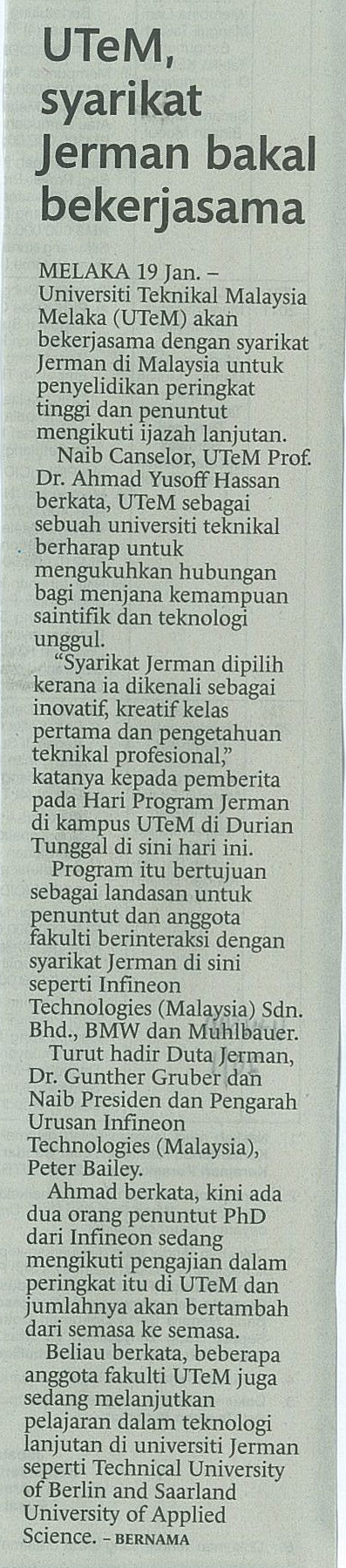 UTeM syarikat Jerman bakal bekerjasama