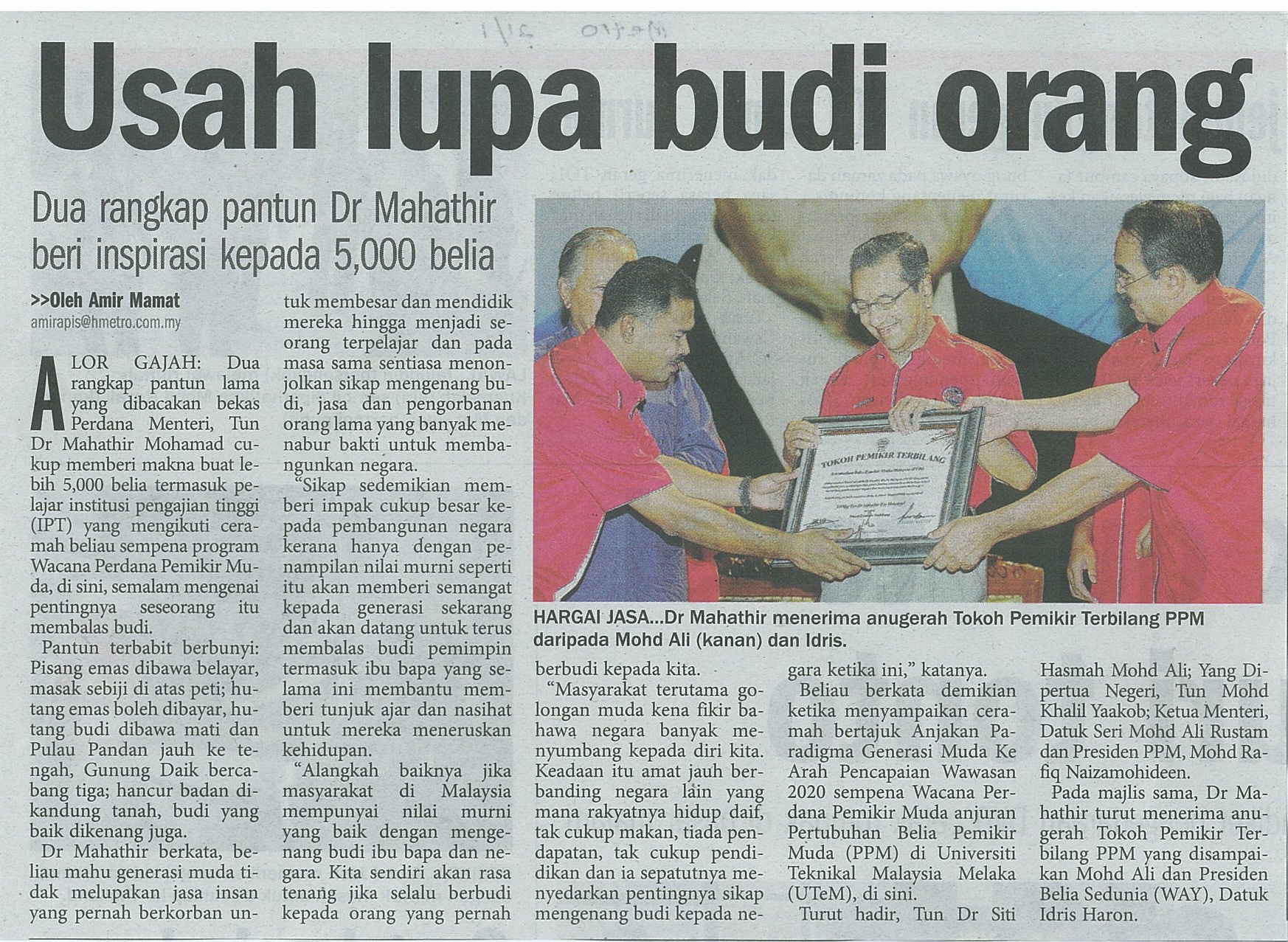 Usah lupa budi orang Dua rangkap pantun Dr Mahathir beri inspirasi kepada 5,000 belia