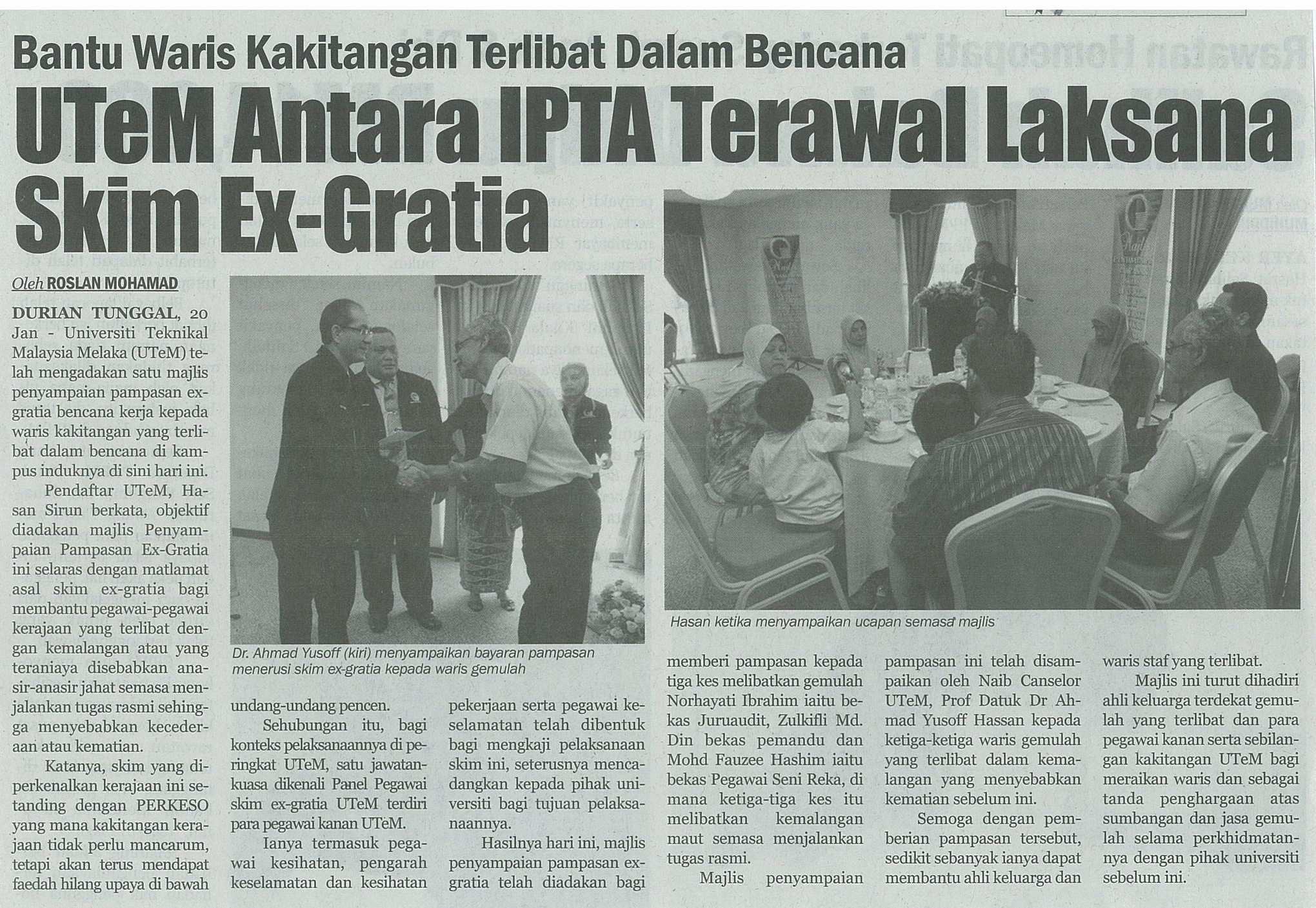 Bantu Waris Kakitangan Terlibat Dalam Bencana UTeM Antara IPTA Terawal Laksana Skim Ex-Gratia