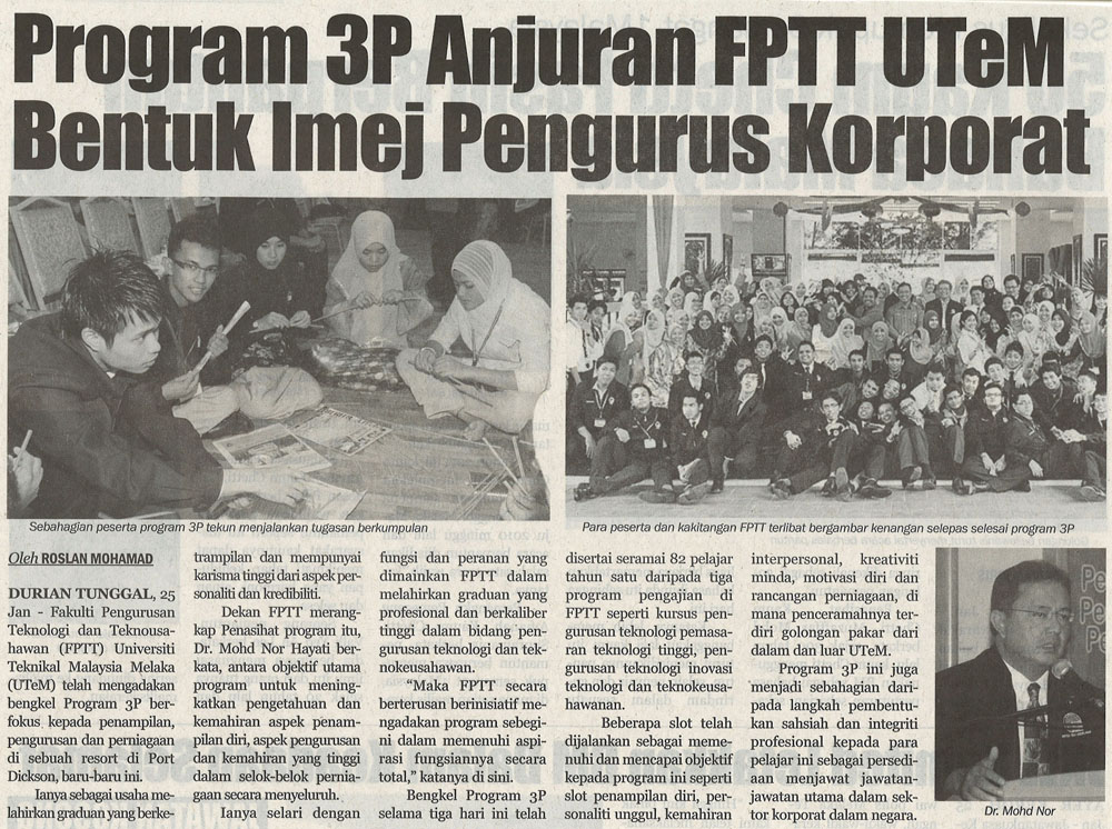Program 3P Anjuran FPTT UTeM Bentuk Imej Pengurus Korporat
