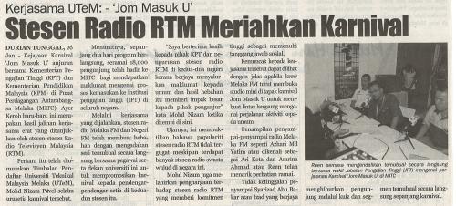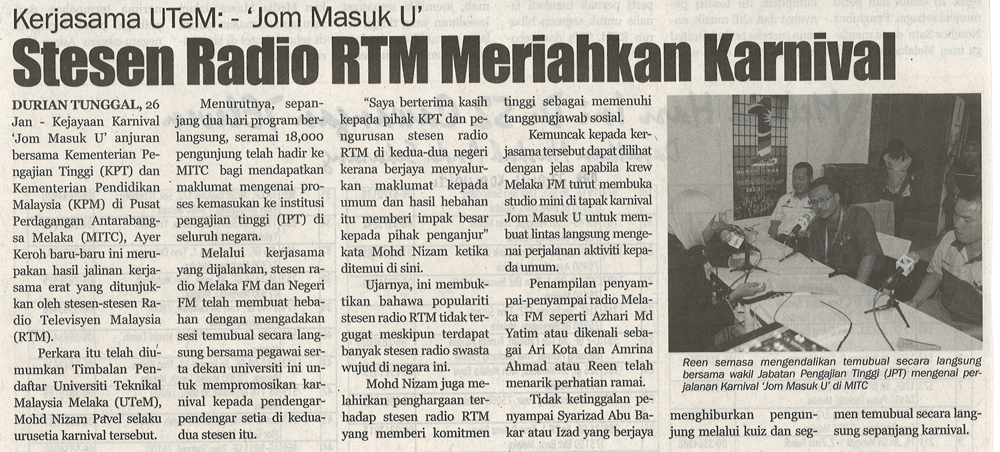 Kerjasama UTeM:-'Jom Masuk U' Stesen Radio RTM Meriahkan Karnival (Komuniti)