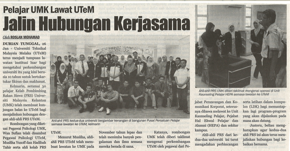 Pelajar UMK Lawat UTeM Jalin Hubungan Kerjasama (Pendidikan)