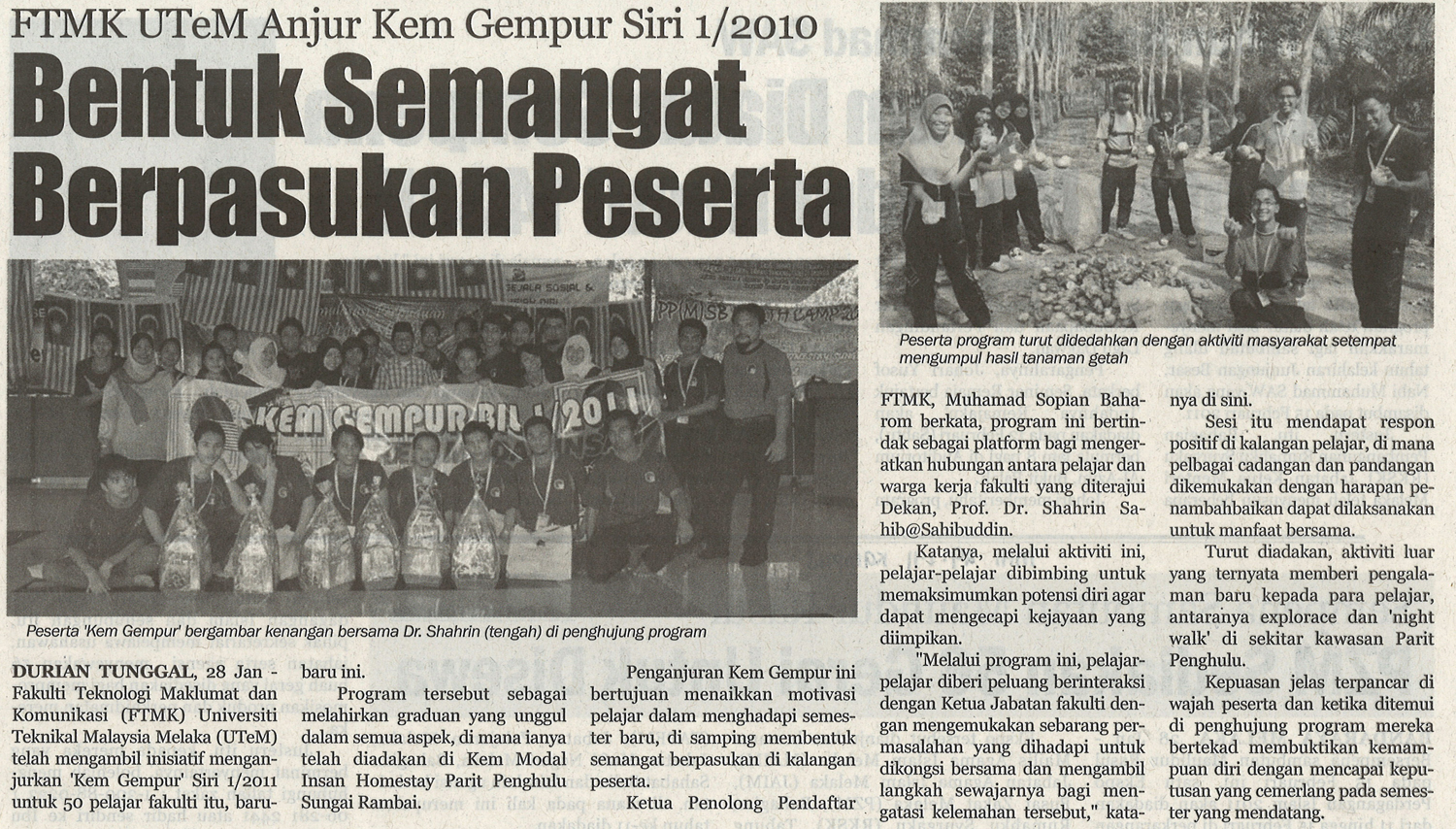 FTMK UTeM Anjur Kem Gempur Siri 1/2010 Bentuk Semangat Berpasukan Peserta