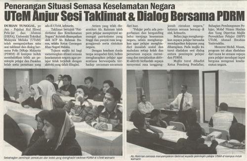 Penerangan Situasi Semasa Keselamatan Negara UTeM Anjur Sesi Taklimat & Dialog Bersama PDRM