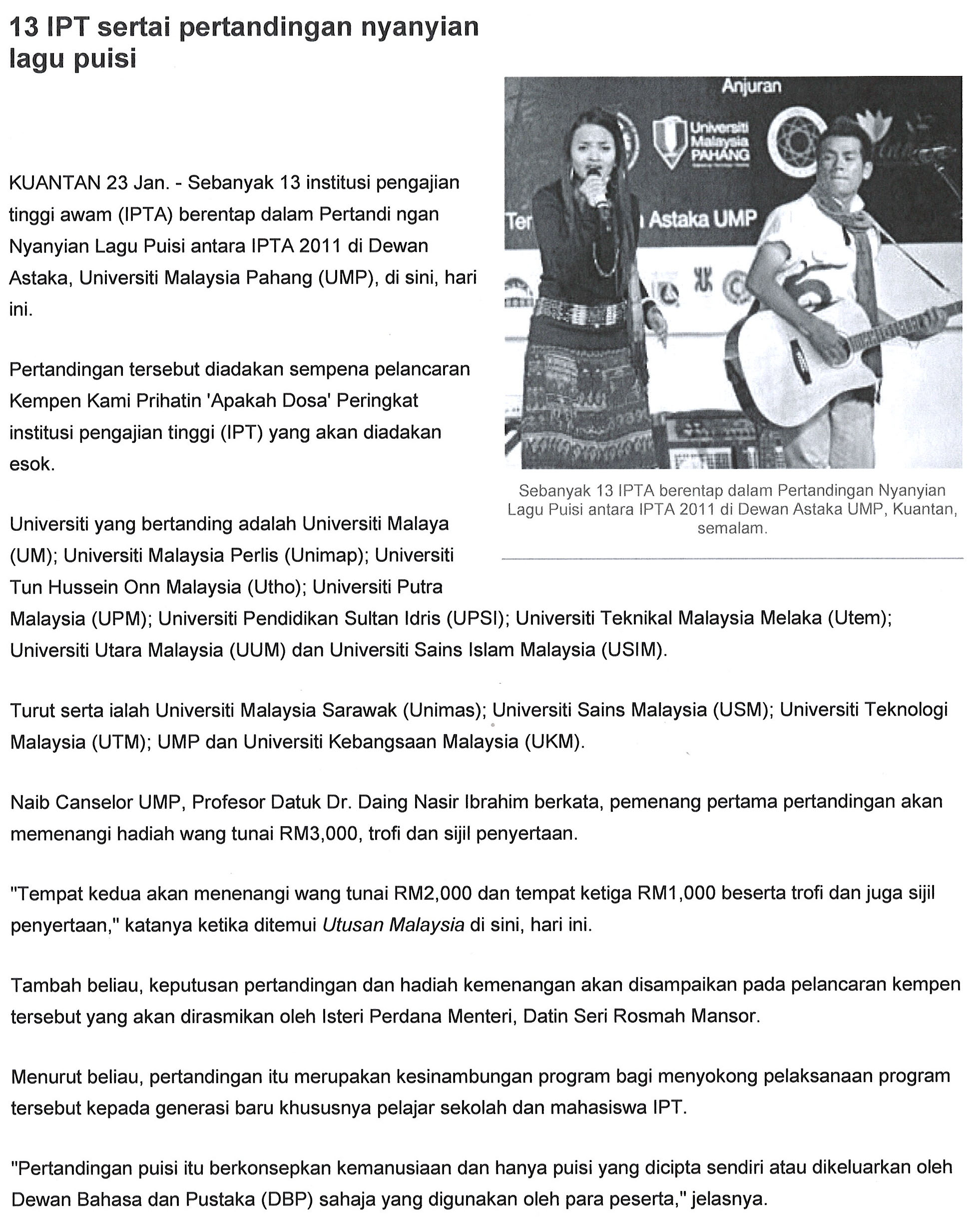 13 IPT sertai pertandingan nyanyian lagu puisi