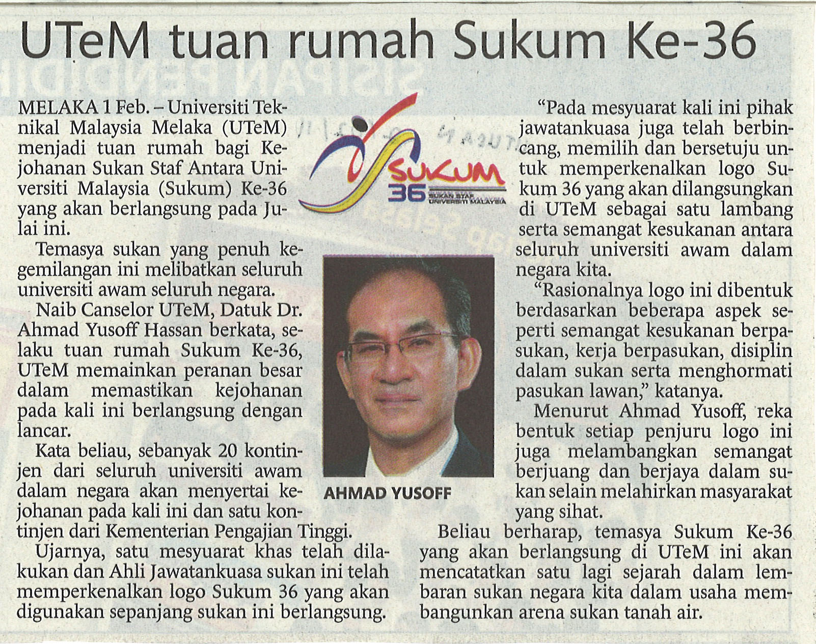 UTeM tuan rumah Sukum Ke-36