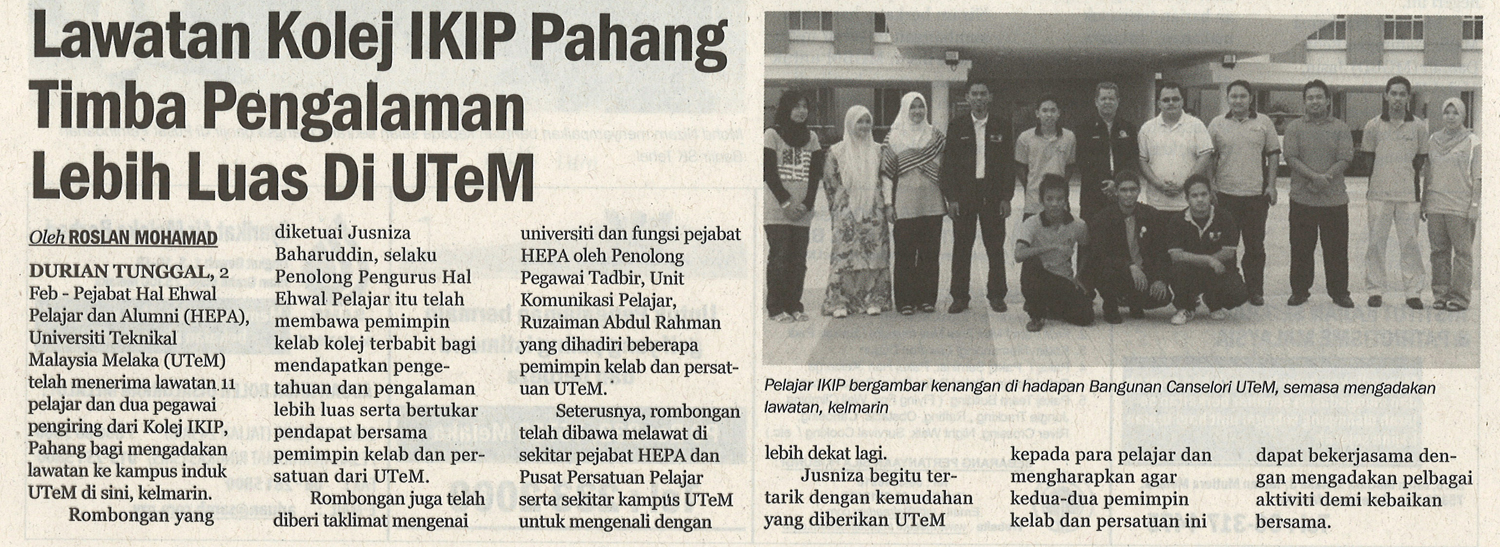 Lawatan Kolej IKIP Pahang Timba Pengalaman Lebih Luas Di UTeM