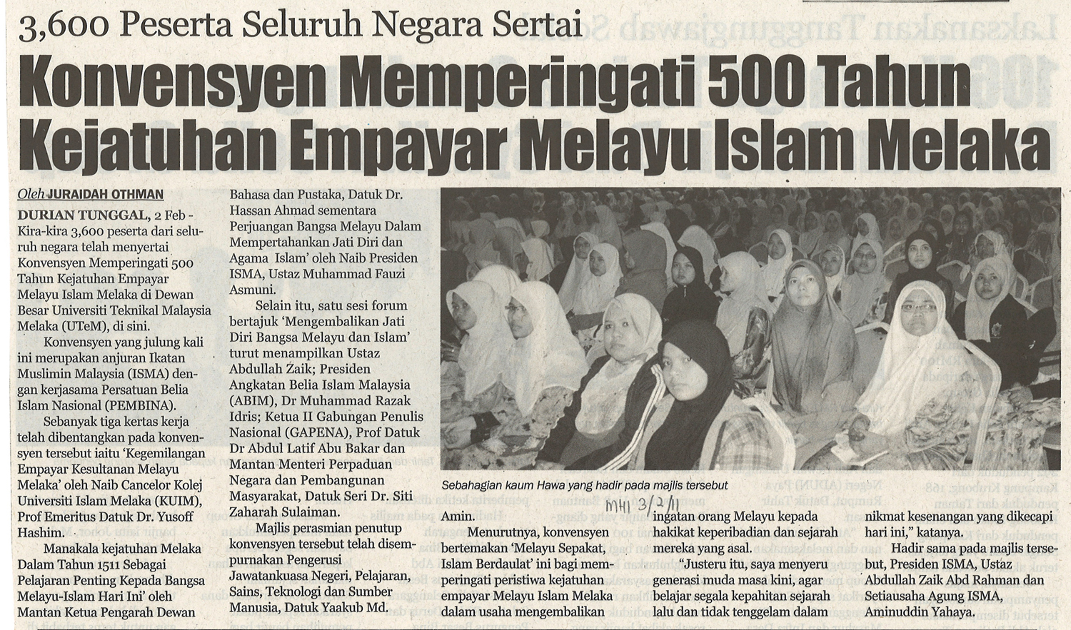 3,600 Peserta Seluruh Negara Sertai Konvensyen Memperingati 500 Tahun Kejatuhan Empayar Melayu Islam Melaka