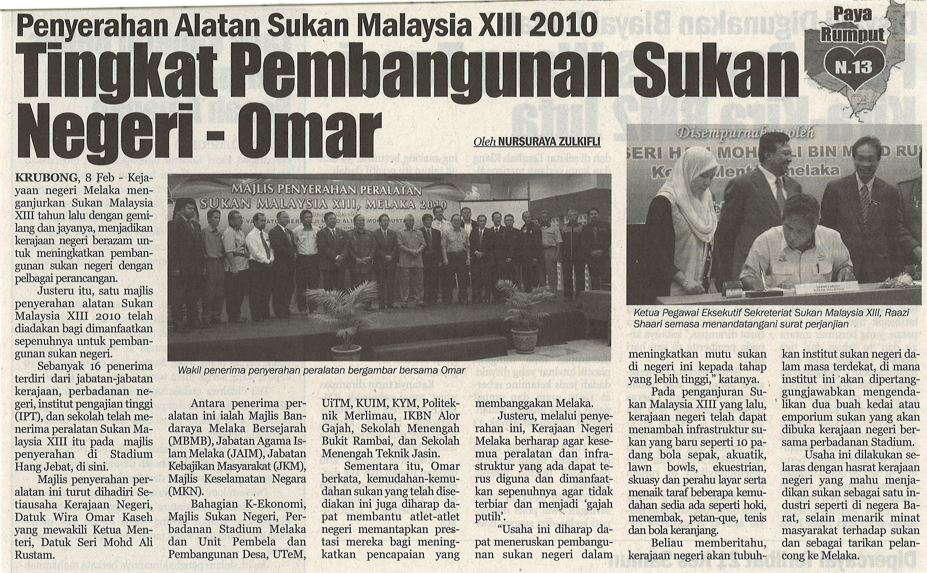 Penyerahan Alatan Sukan Malaysia Xlll 2010 Tingkat Pembangunan Sukan Negeri-Omar