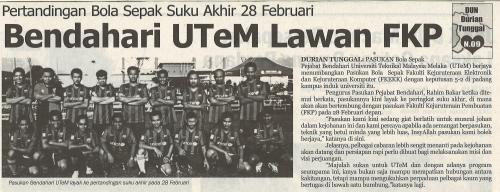 Pertandingan Bola Sepak Suku Akhir 28 Febuari Bendahari UTeM Lawan FKP