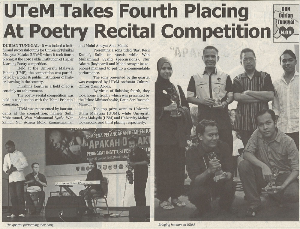 UTeM Takes Fourth Placing At Poetry Recital Competition