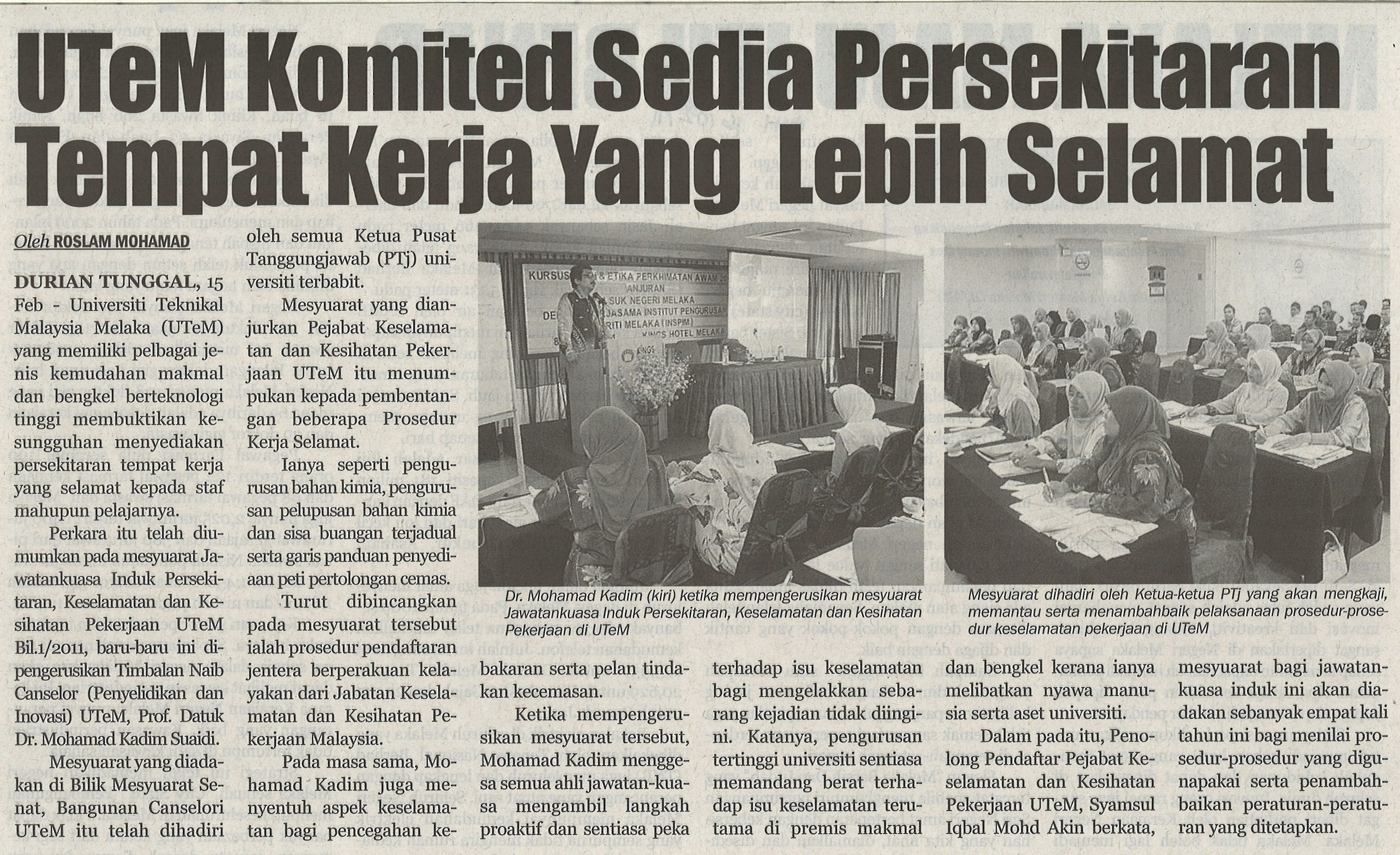 UTeM Komited Sedia Persekitaran Tempat Kerja Yang Lebih Selamat