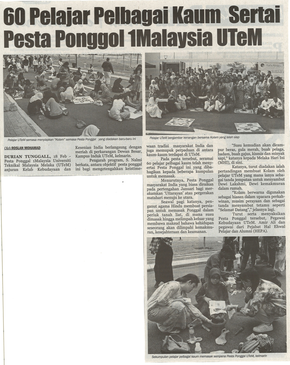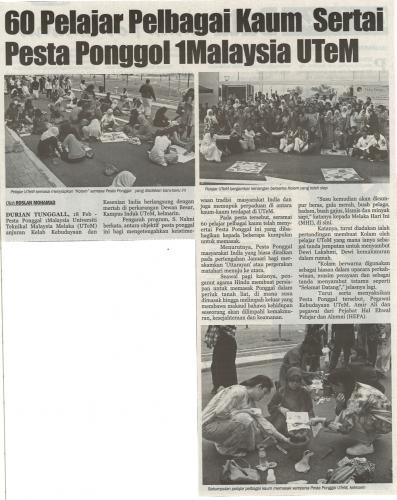 60 Pelajar Pelbagai Kaum Sertai Pesta Ponggal 1Malaysia UTeM