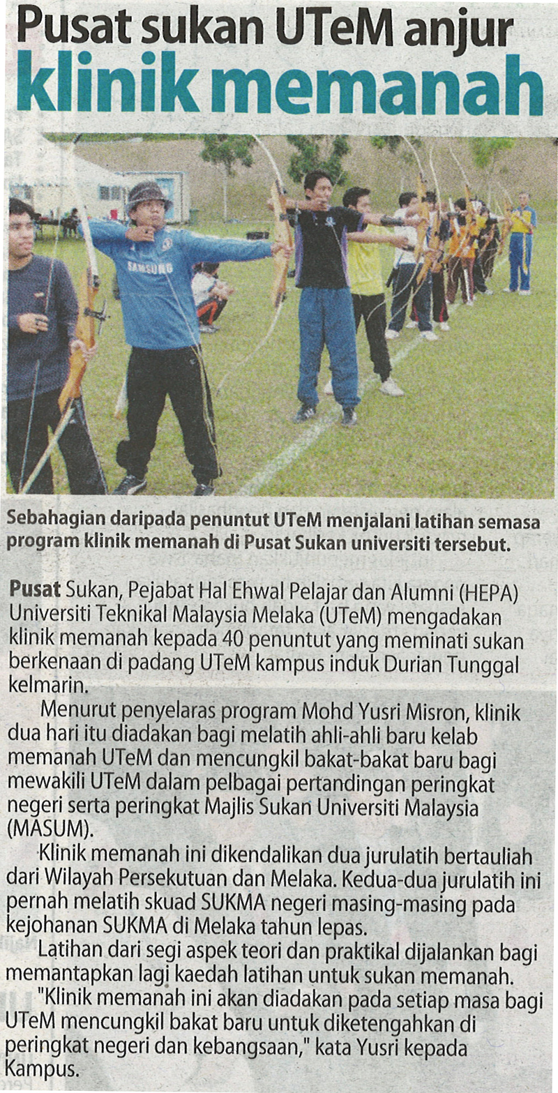 Pusat sukan UTeM anjur klinik memanah