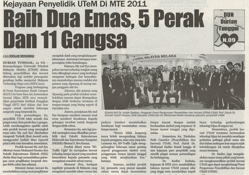 Kejayaan Penyelidik UTeM di MTE 2011 Raih Dua Emas, 5 Perak dan 11 Gangsa