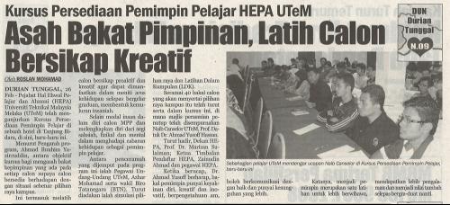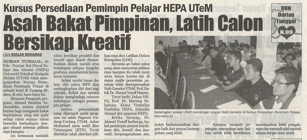 Kursus Persediaan Pemimpin Pelajar HEPA UTeM Asah Bakat Pimpinan, Latih Calon Bersikap Kreatif