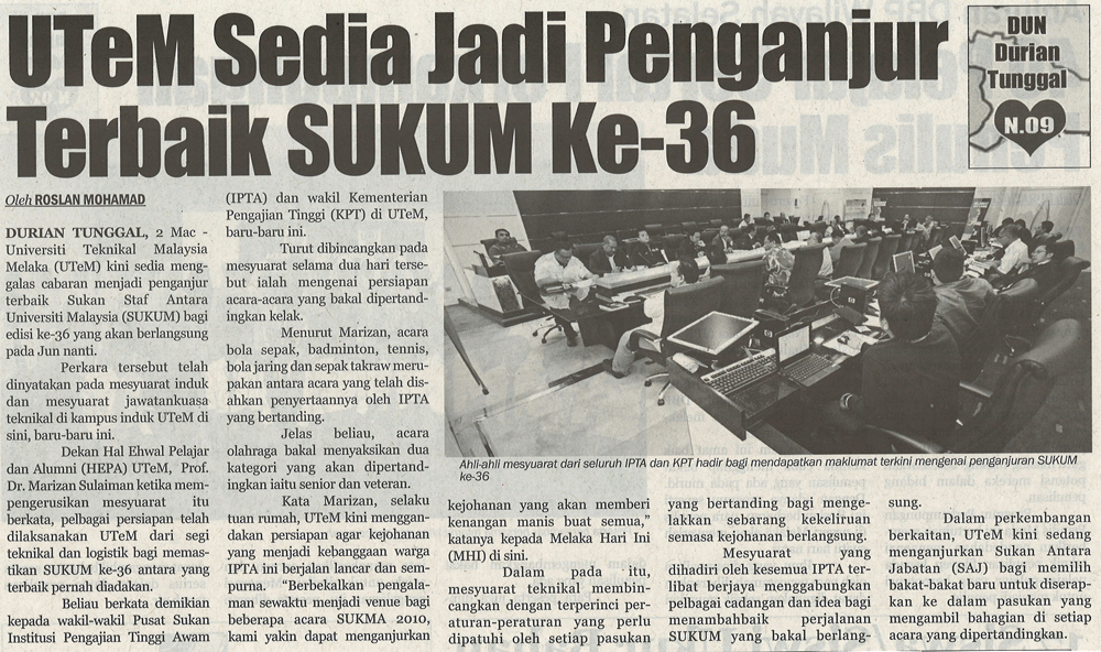 UTeM Sedia Jadi Penganjur Terbaik SUKUM Ke-36