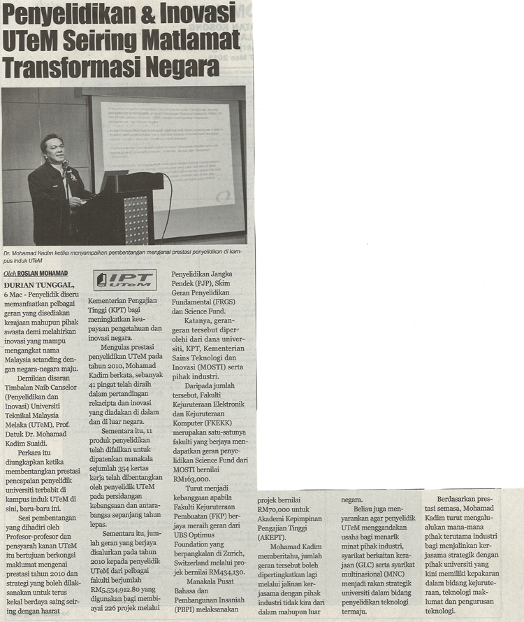 Penyelidikan & Inovasi UTeM Seiring Matlamat Transformasi Negara