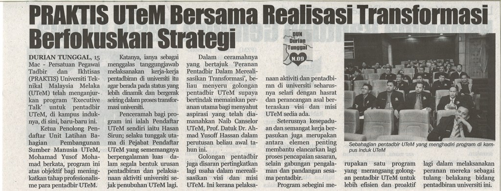 PRAKTIS UTeM Bersama Realisasi Transformasi Berfokuskan Strategi