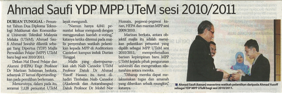 Ahmad Saufi YDP MPP UTeM sesi 2010/2011