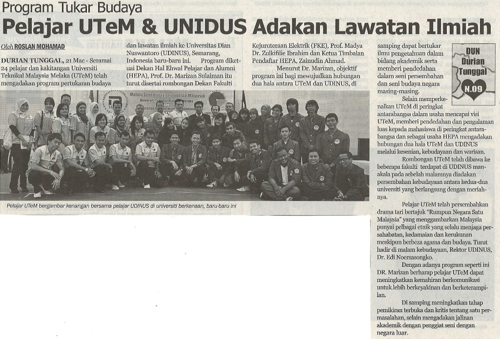 Pelajar Utem & UNIDUS Adakan Lawatan ilmiah