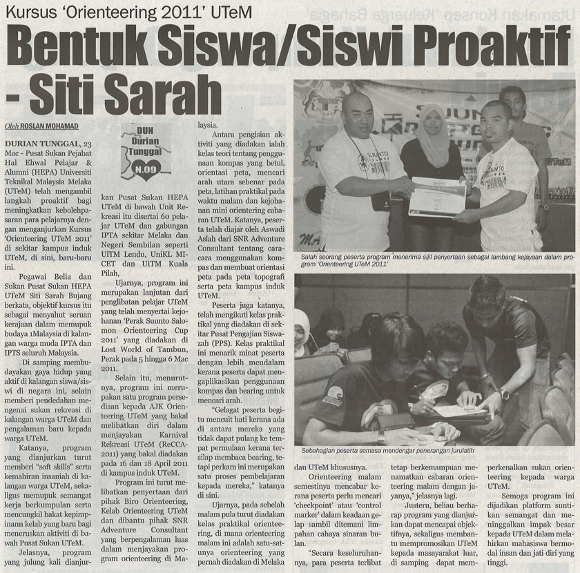 Kursus 'Orienteering 2011' UTeM Bentuk Siswa/Siswi Proaktif- Siti Sarah