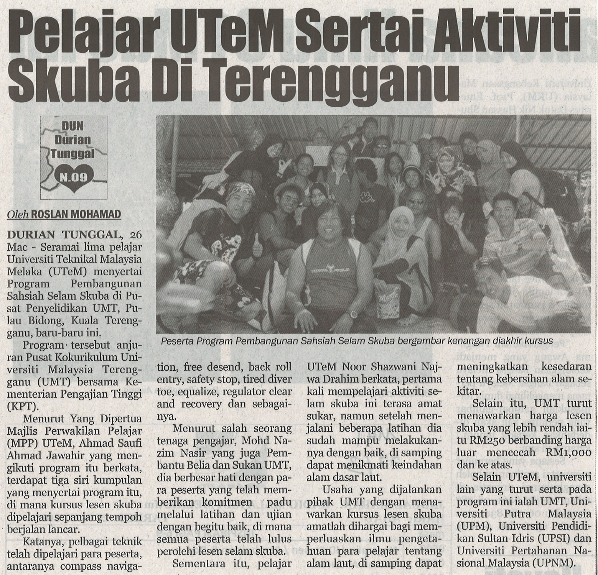 Pelajar Utem Sertai Aktiviti Skuba Di Terengganu