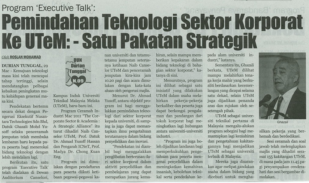Program "Executive Talk" Pemindahan teknologi Sektor Korporat Ke UTeM :- Satu Pakatan Stategik