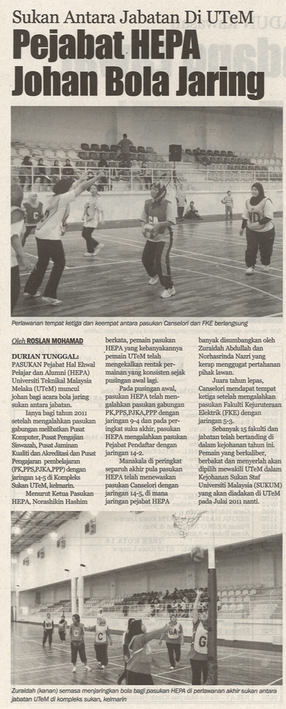 Sukan Antara Jabatan Di UTeM Pejabat HEPA Johan Bola Jaring