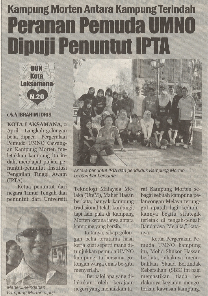 Kampung Morten Antara Kampung Terindah Peranan Pemuda UMNO Dipuji penuntut IPTA