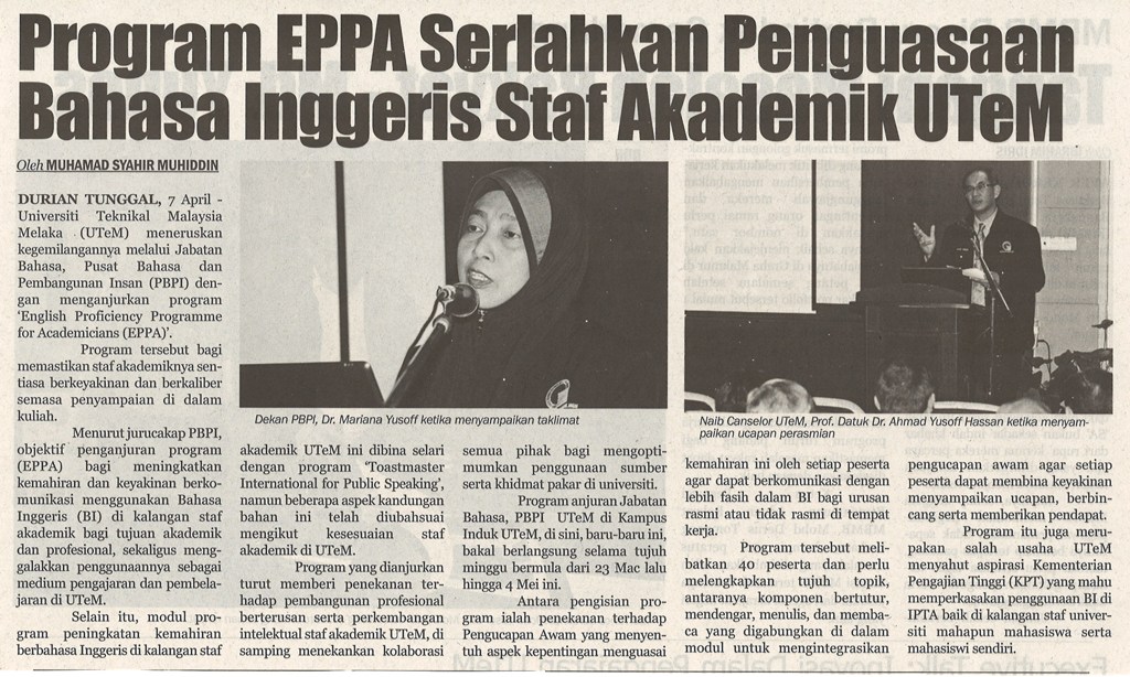 Program EPPA Serlahkan Penguasaan Bahasa Inggeris Staf Akademik UTeM