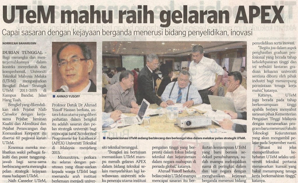 UTeM mahu raih gelaran APEX,Capai sasaran dengan kejayaan berganda melalui bidang penyelidikan,inovasi