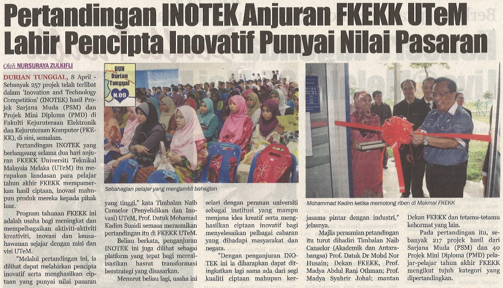Pertandingan INOTEK Anjuran FKEKK UTeM,Lahir Pencipta Inovatif Punyai NIlai Pasaran