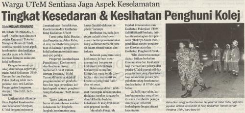 Warga UTeM Sentiasa Jaga Aspek Keselamatan,Tingkat Kesedaran & Kesihatan Penghuni Kolej