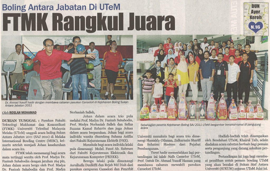 Boling Antara Jabatan Di UTeM,FTMK Rangkul Juara
