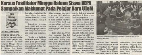 Kursus Fasilitator Minggu Haluan Siswa HEPA Sampaikan Maklumat Pada Pelajar Baru UTeM