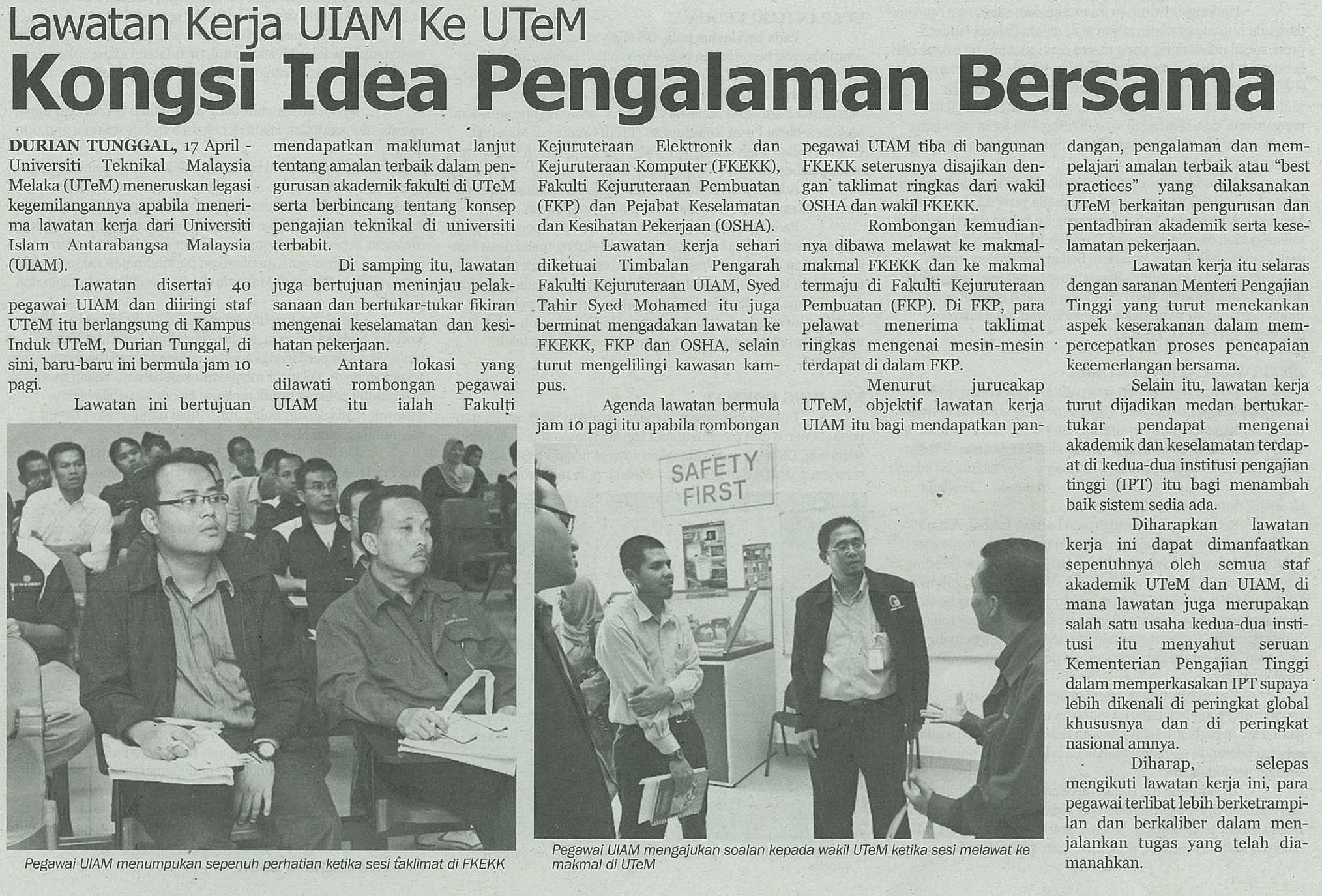 Lawatan Kerja UIAM ke UTeM Kongsi Idea Pengalaman Bersama