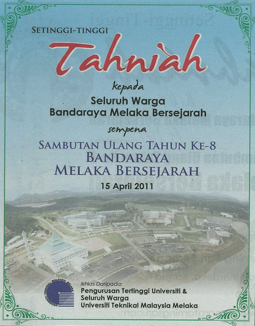 Iklan Ucapan Tahniah Sambutan Ulangtahun Ke-8 Melaka Bandaraya Bersejarah